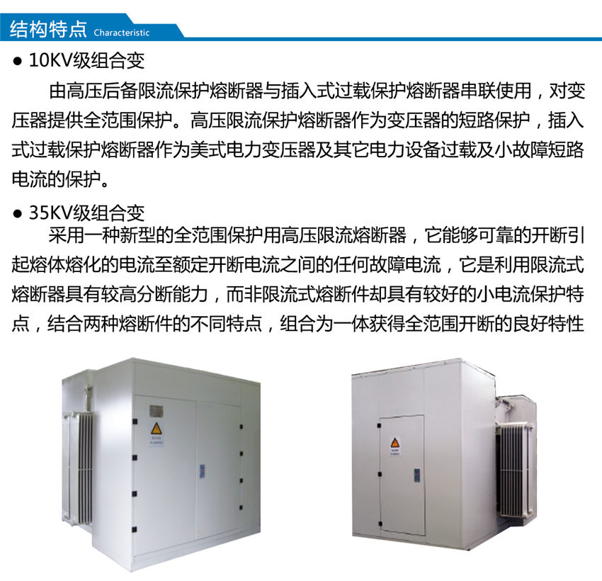 ZGS-Z.T-□/□系列組合式變壓器是消化吸收內(nèi)外的先進(jìn)技術(shù)結(jié)合內(nèi)需求自行開(kāi)發(fā)的系列產(chǎn)品,該產(chǎn)品是將變壓器,負(fù)荷開(kāi)關(guān),高壓熔斷器安裝在變壓器的箱體內(nèi),利用變壓器的絕緣液體作為整個(gè)產(chǎn)品的絕緣和散熱介質(zhì),采用全密封結(jié)構(gòu),外殼采用分體,噴丸、酸洗、磷化、分別噴涂底漆、中間漆、面漆達(dá)到表面的防腐性、耐厚性、防紫外線性均超過(guò)普通噴涂的強(qiáng)度,具有體積小,重量輕、安裝方便等優(yōu)點(diǎn)。